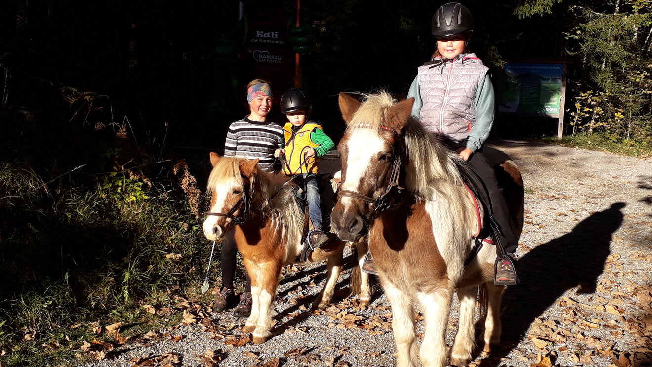 Hoch zu Ross erlernen schon die Jüngsten spielerisch beim Pflegen und Reiten den Umgang mit den Ponys. Auf dem eigenen Reitplatz wird es beim Slalomreiten, an der Longe und den leichten Dressuraufgaben nicht langweilig. Ein Ausritt durch den Wald zur Sattelberghütte? Wer reitet mit. Die Kleinsten werden natürlich geführt.Am Natur-und Umweltlehrpfad gibt es vieles spielerisch zu entdecken.